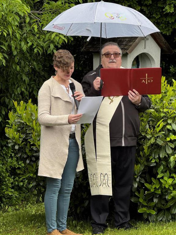Andreas Grieszler als Zelebrant und Lena Hrazdil mit geistlichen Impulsen gestalteten trotz des regnerischen Wetters eine sehr stimmige Feier. Mit Liedern umrahmt wurde die Andacht diesmal von der