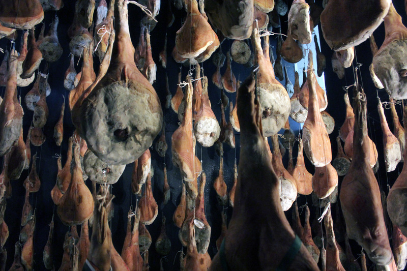 Nach wenigen Minuten Fahrzeit wurde uns von einer Schinkenexpertin die Philosophie der Schinkengenusswelt nähergebracht. Wir besuchten den Schweinestall und lernten das Schwerste mit ca. 450 kg, das Älteste mit 9 ½ Jahren und die Diva unter den Schweinen kennen. Nach der Erklärung der Verwendung einzelner Schweinsteile und einem Film über die Vorbereitung bzw. Reifung der Schinken ließen wir uns die servierten Kostproben schmecken.