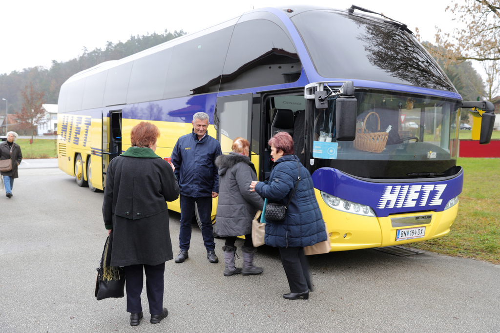 Unser diesjähriger Adventausflug führte 49 Siedlungsbewohner und ihre Freunde ins Waldviertel. Aufgrund des umfangreichen Programms war die frühe Abfahrt um 7.30 Uhr notwendig. Jeder Mitreisende erhielt deshalb vom Siedlerverein ein Jausensäckchen mit Wurst-/Käsesemmeln, einem Apfel und einer Flasche Mineralwasser.