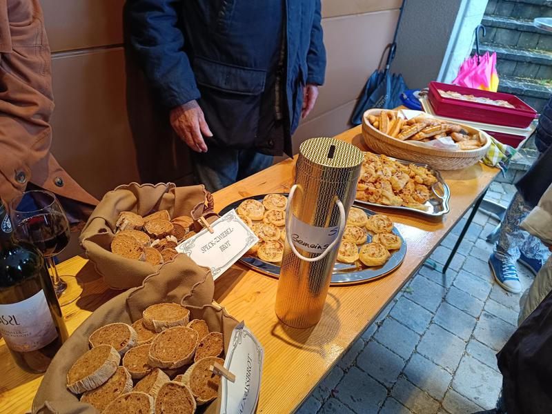 Für den Gedankenaustausch nach der Andacht wurden die Teilnehmer zur Agape eingeladen. Es wurden selbstgebackene Brotspezialitäten spendiert, vom Siedlerverein wurden wieder Wein und Wasser zur Verfügung gestellt. Die Spenden in Höhe von